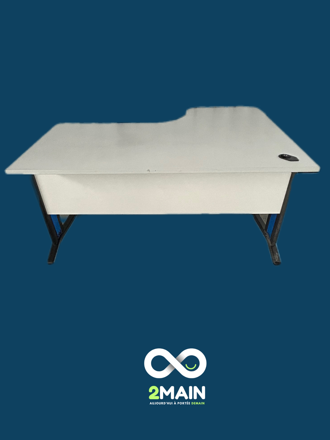 Plateau en bois Blanc , pied Métal noir et bleu